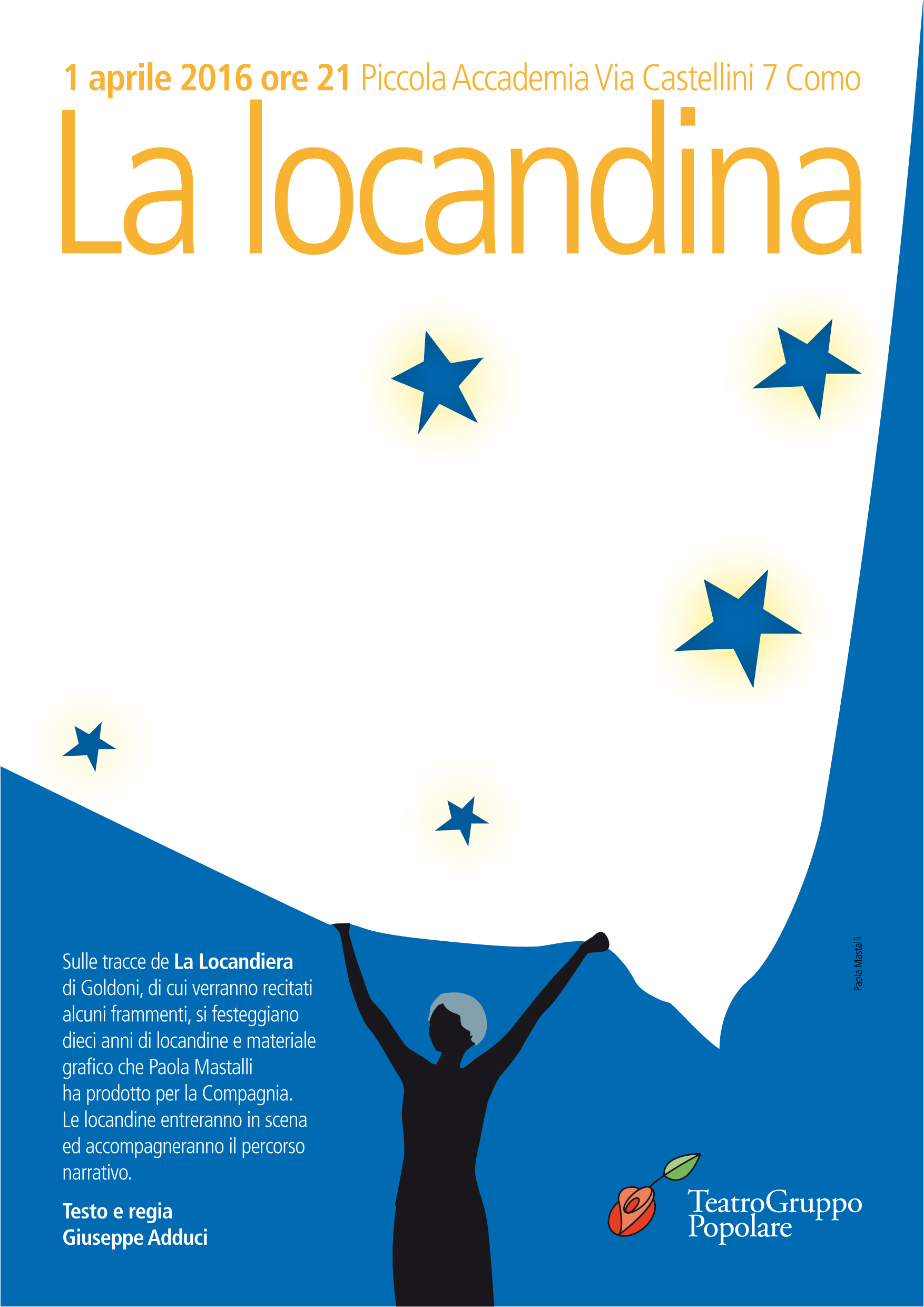 Sulle tracce de La Locandiera di Goldoni, di cui verranno recitati alcuni frammenti, si festeggiano dieci anni di locandine e materiale grafico che Paola Mastalli ha prodotto per la Compagnia.