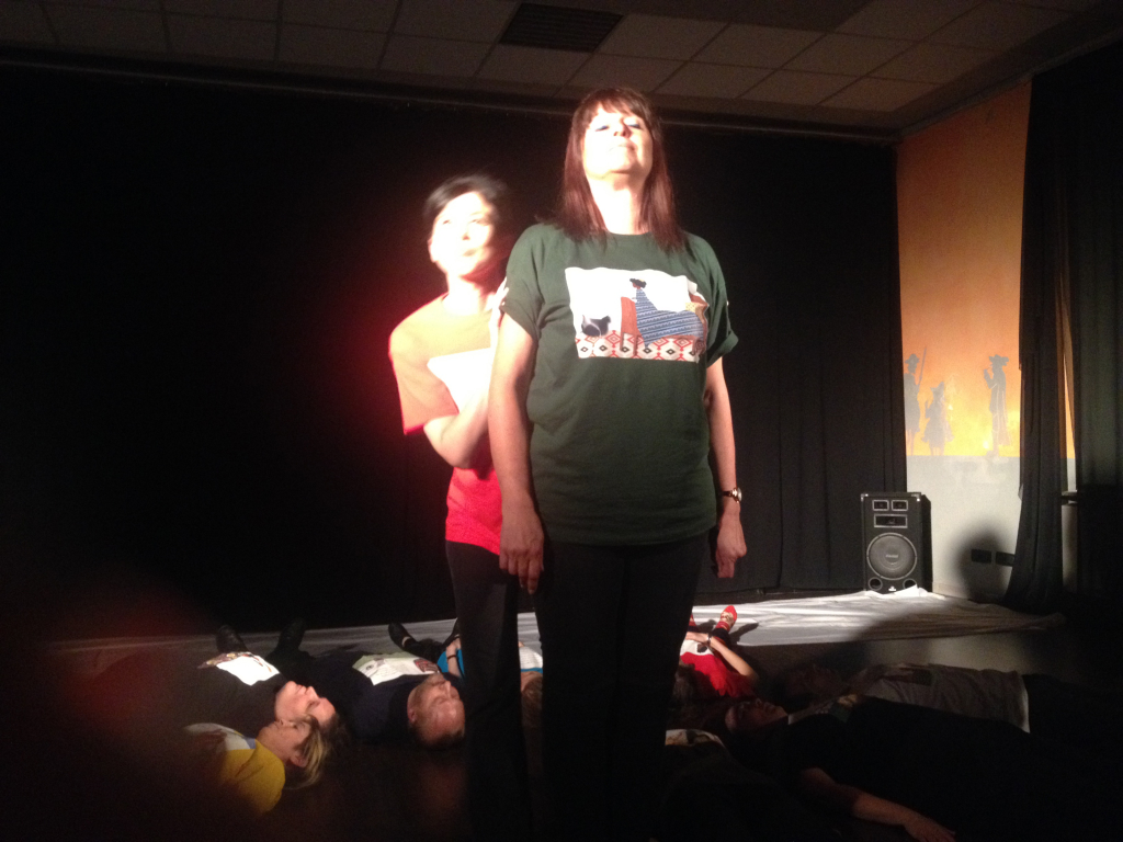 Gli attori si alzano, si perdono tra il pubblico e raccontano storie del paese di provenienza di quelle anime ormai spente sulle spiagge lampedusane. Raccontano con questo la loro voglia di dare, oltre che di ricevere. Gli uccelli hanno le ali, gli alberi hanno le radici. Gli uomini hanno le gambe, e vanno. Per raccontarsi, e nel farlo raccontano anche chi incontrano.